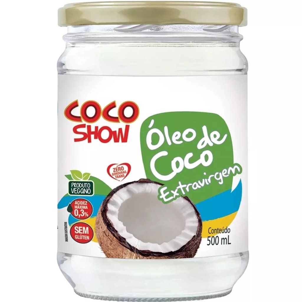 O Óleo de Coco Extravirgem 500 ml da Coco Show é um produto 100% natural, extraído a frio da polpa fresca do coco para preservar todos os seus nutrientes, sabor e aroma originais. Rico em gorduras boas (TCM), auxilia na produção de energia, no metabolismo e na imunidade, podendo ser usado tanto na culinária quanto em cuidados com a pele e os cabelos. Versátil e saudável, é ideal para quem busca um estilo de vida equilibrado e natural.