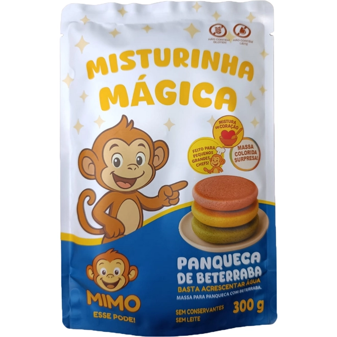 A Misturinha Mágica para Panqueca de Beterraba 300g – Mimo Esse Pode é uma mistura prática para preparo de panquecas coloridas e saborosas, desenvolvida para facilitar o preparo de receitas no dia a dia e tornar a experiência na cozinha mais divertida, especialmente para crianças. Basta acrescentar água conforme as instruções da embalagem para obter uma massa macia e leve, que resulta em panquecas com coloração natural de beterraba e sabor suave, ideais para café da manhã, lanches ou refeições rápidas. O produto possui 300 g, não contém leite e é sem conservantes, oferecendo praticidade e uma forma criativa de incluir preparações diferentes na rotina alimentar. Panquecas feitas com beterraba são conhecidas por trazer cor natural e nutrientes do vegetal, além de variar o cardápio de maneira simples e saborosa.