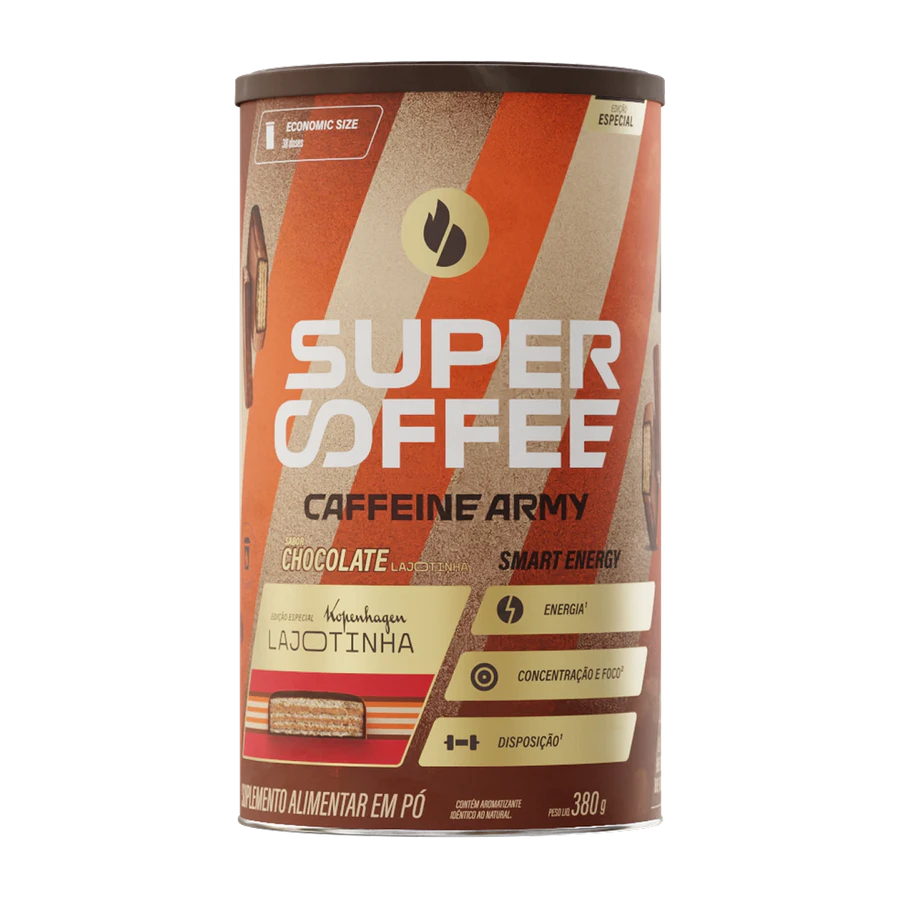 O SuperCoffee Lajotinha – Caffeine Army é uma bebida funcional saborosa e energética, inspirada no clássico doce brasileiro. Sua fórmula combina café premium, TCM, colágeno, taurina, L-teanina, adaptógenos e vitaminas, criando um blend completo para aumentar energia, foco, disposição e performance ao longo do dia. Com sabor cremoso que lembra amendoim com chocolate, é zero adição de açúcar, prático e ideal para usar no pré-treino, no trabalho ou sempre que precisar de um impulso de produtividade sem abrir mão de um sabor delicioso.