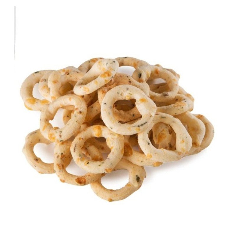 Biscoito de Polvilho Sabor Cebola, crocante e leve, ideal para lanches rápidos. Sem glúten, com cebola desidratada e ingredientes selecionados.