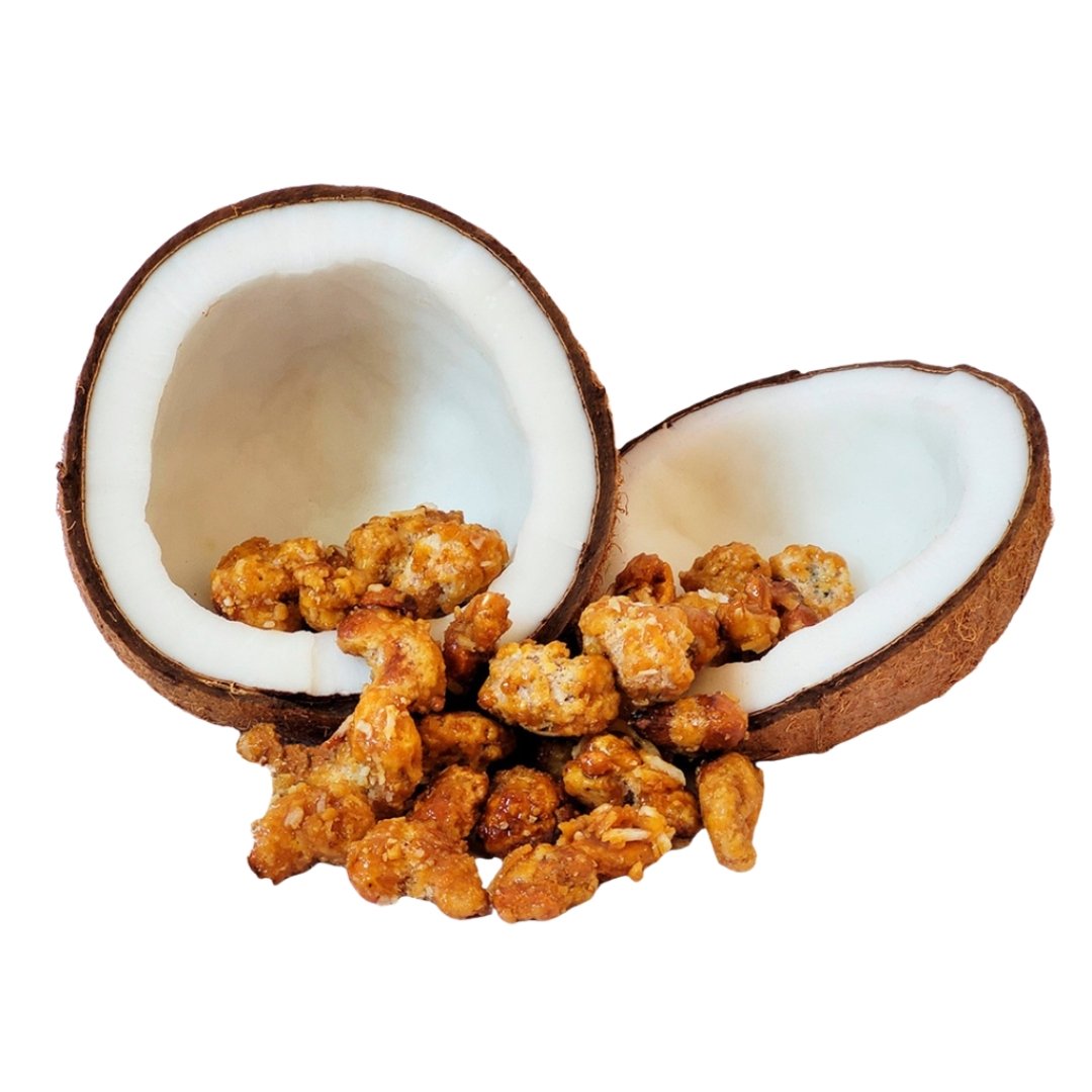 A Castanha de Caju Caramelizada com Coco Queimado é um snack crocante e irresistível, elaborado com castanhas de caju selecionadas envoltas em uma camada de açúcar caramelizado e finalizadas com coco queimado, que traz um sabor mais intenso, levemente tostado e aromático. Rica em gorduras boas, proteínas e energia, é perfeita para consumir como lanche, servir como petisco ou compor momentos especiais. Com textura crocante e sabor marcante, é uma opção prática e deliciosa para o dia a dia.